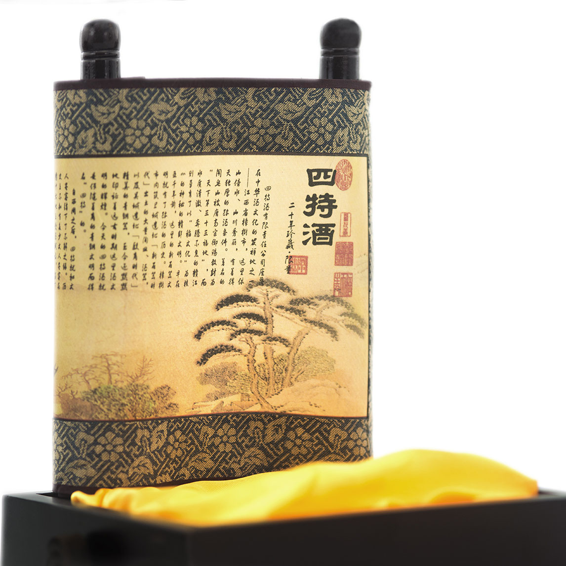 典雅的酒瓶,木質(zhì)的盒體,寓意納財(cái)源的仿古錢袋,體現(xiàn)四特酒史的收藏絲帛卷軸,神韻天成,令人嘆為觀止,限量生產(chǎn),限量發(fā)售,使其不可多得,貴乎稀有,有較高的品味和收藏意義,珍藏酒體高貴典雅,晶瑩剔透,高貴脫俗,渾然天成,實(shí)為酒林中的奇葩。